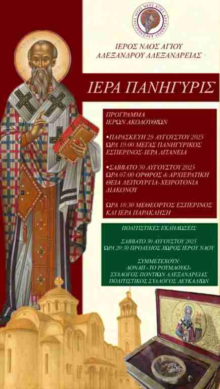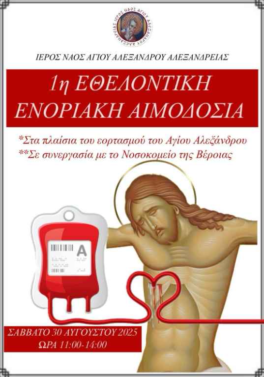 Υποδοχή του Σταυρού του Αγίου Παϊσίου σήμερα Παρασκευή, εορταστικές εκδηλώσεις και εθελοντική αιμοδοσία επί της εορτής του Αγίου Αλεξάνδρου στην Αλεξάνδρεια.