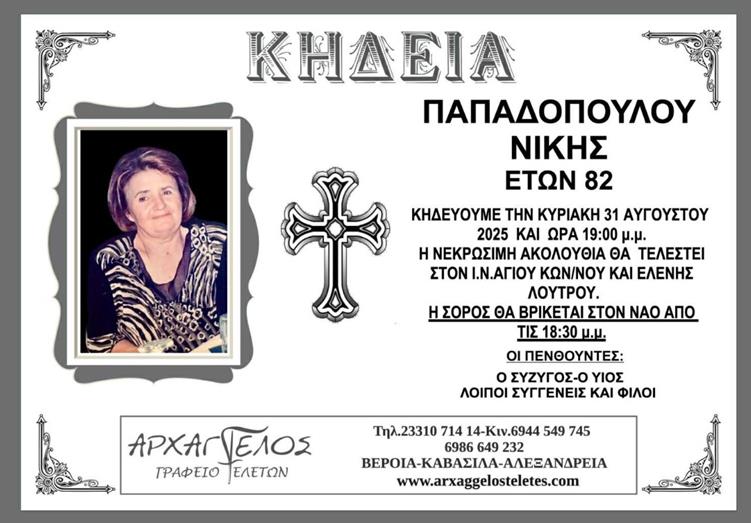 Η κηδεία της Παπαδοπούλου Νίκης στο Λουτρό Ημαθίας την Κυριακή 31 Αυγούστου 2025.