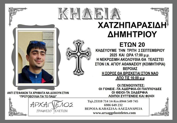 Η κηδεία του Χατζηπαρασίδη Δημητρίου στην Βέροια την Τρίτη 2 Σεπτεμβρίου 2025