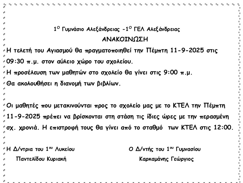 Η ώρα του αγιασμού στο 1ο Γυμνάσιο & 1ο Λύκειο Αλεξάνδρειας