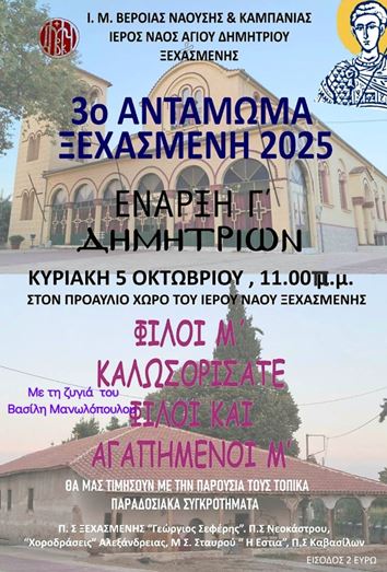 Για τρίτη συνεχόμενη χρονιά, η Ξεχασμένη φοράει τα γιορτινά της και καλεί όλο τον κόσμο σε μια μεγάλη γιορτή την 5η Οκτωβρίου. Τα φετινά Δημήτρια δεν είναι απλώς μια γιορτή· είναι μια υπόσχεση συνέχειας, μια πράξη συλλογικής μνήμης και ένα κάλεσμα συμμετοχής.