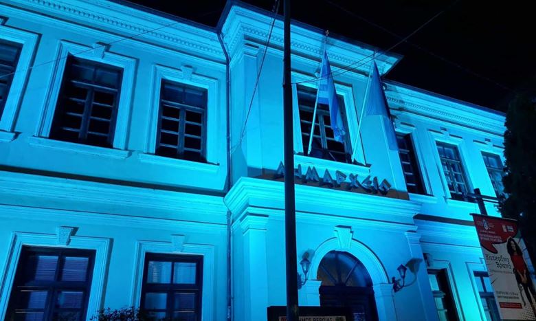 Το Δημαρχείο Φωταγωγήθηκε για το Σύνδρομο Rett – Μήνυμα Ελπίδας και Αλληλεγγύης.