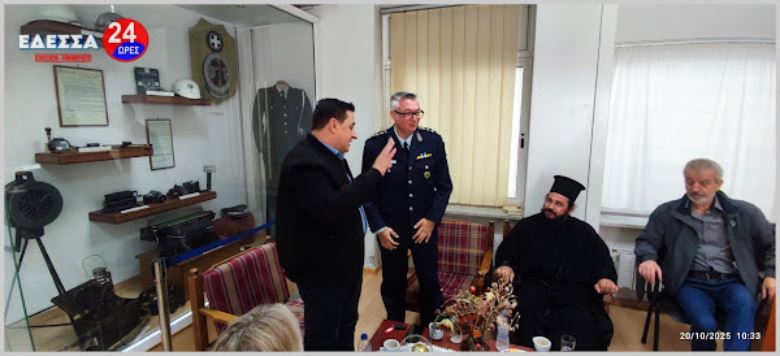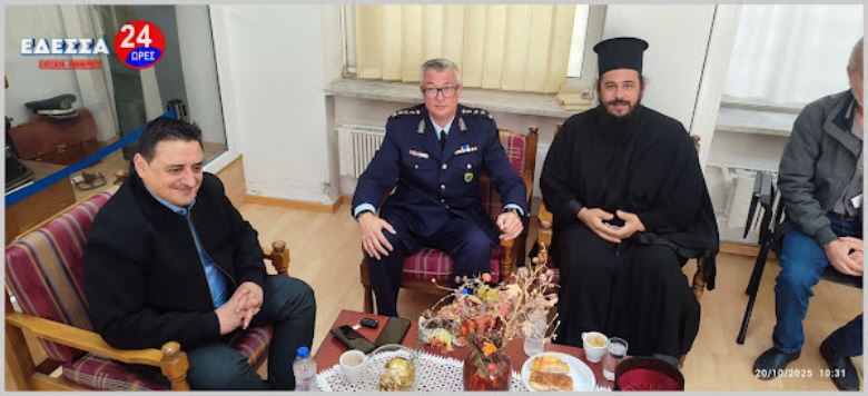 -Μετά την ολοκλήρωση της Θείας Λειτουργίας, ακολούθησε μια λιτή δεξίωση στην λέσχη του Αστυνομικού Μεγάρου της Διεύθυνσης Αστυνομίας Πέλλας, όπου οι προσκεκλημένοι είχαν την ευκαιρία να ανταλλάξουν ευχές και να συνομιλήσουν σε ένα πιο χαλαρό κλίμα.