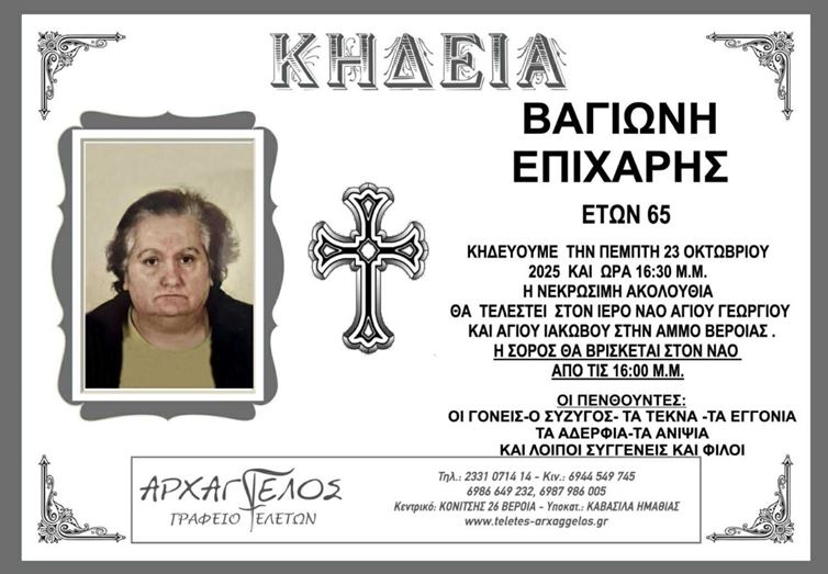 Η κηδεία της Βαγιώνη Επιχάρης την Πέμπτη 23 Οκτωβρίου2025