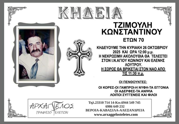 Η κηδεία του Τζιμούλη Κωνσταντίνου στο Λουτρό Ημαθίας την Κυριακή 26 Οκτωβρίου 2025.