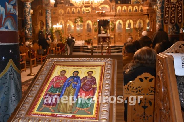 Η ακολουθία τελέστηκε με κάθε εκκλησιαστική μεγαλοπρέπεια και περιλάμβανε αρτοκλασία και θείο κήρυγμα, που συγκίνησε τους παρευρισκόμενους. Πιστοί κάθε ηλικίας κατέκλυσαν τον ναό και τον προαύλιο χώρο, αποδεικνύοντας την αφοσίωσή τους στους προστάτες Αγίους της περιοχής.