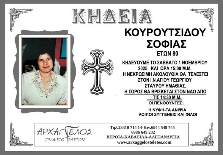 Η κηδεία της Κουρουτσίδου Σοφίας στον Σταυρό Ημαθίας το Σάββατο 1 Νοεμβρίου 2025