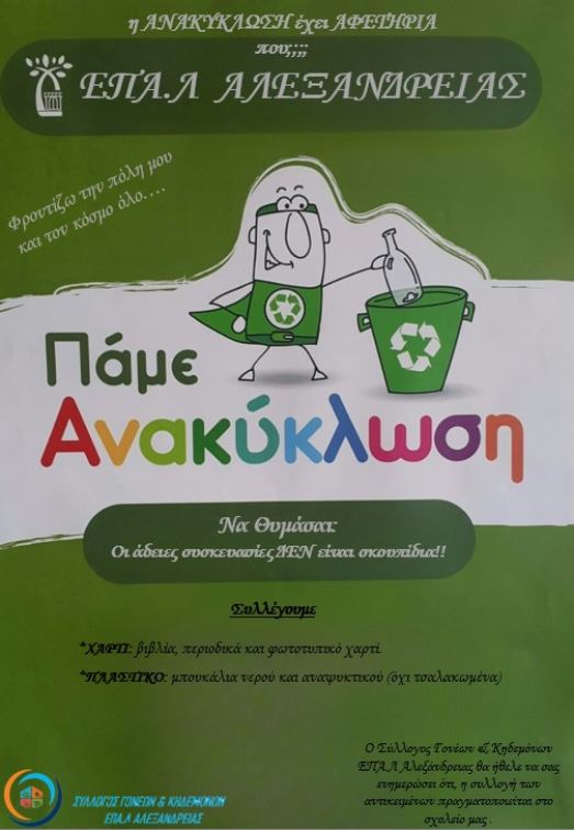 Σύλλογος Γονέων και Κηδεμόνων του ΕΠΑ.Λ Αλεξάνδρειας. Δράση ανακύκλωσης