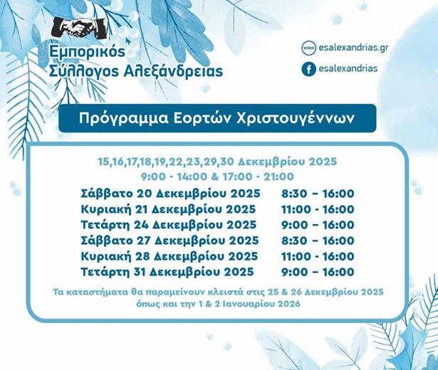 Εμπορικός Σύλλογος Αλεξάνδρειας. Το πρόγραμμα εορτων των Χριστουγέννων.