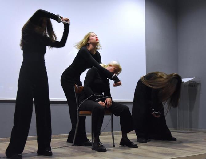 Οι καλλιτέχνες κα Ηλιάνα Τσίλη και κ. Δημήτρης Πάζος παρουσίασαν ένα συγκλονιστικό θεατρικό δρώμενο βασισμένο σε πραγματικές μαρτυρίες ανθρώπων που έχουν βιώσει κακοποίηση. Μέσα από έντονα συναισθηματικές σκηνές αναδείχθηκαν οι σιωπηλές διαδρομές της βίας, ο φόβος, η απομόνωση και ο ψυχολογικός εγκλωβισμός που βιώνουν τα θύματα.