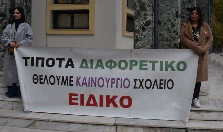 Για μία ακόμη χρονιά, έξω από το Δημαρχείο Αλεξάνδρειας υπήρχε πανό που υπενθύμιζε το πάγιο αίτημα: την ανέγερση ενός νέου κτιρίου για τη στέγαση του Ειδικού Δημοτικού Σχολείου.