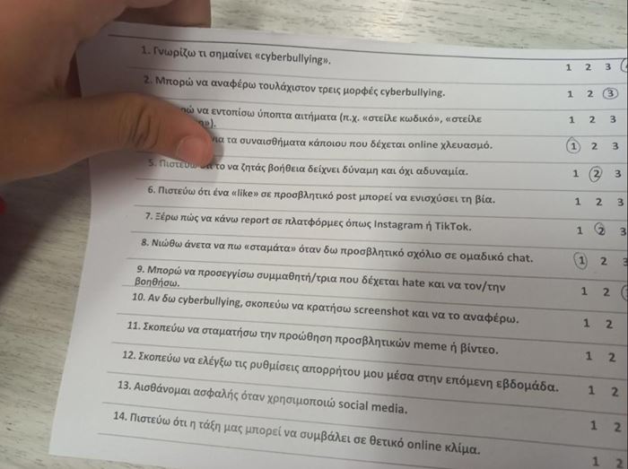 Στο εργαστήριο οι μαθητές συμμετείχαν ενεργά, μέσα από συζήτηση και βιωματικές δραστηριότητες, αναγνωρίζοντας τις μορφές διαδικτυακού εκφοβισμού, τους τρόπους προστασίας τους, αλλά και τα βήματα που μπορούν να ακολουθήσουν όταν χρειάζονται βοήθεια. Το Γυμνάσιο Τρικάλων ευχαριστεί θερμά την «Πρωτοβουλία για το Παιδί» για τη συνεργασία και την πολύτιμη συμβολή της στη διαμόρφωση ενός σχολικού περιβάλλοντος που στηρίζει, προστατεύει και ενδυναμώνει κάθε παιδί.