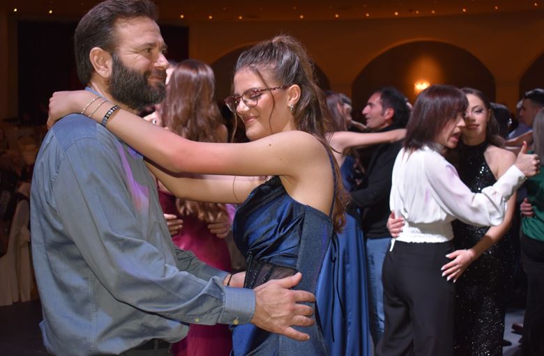 Σημαντική στιγμή της βραδιάς όταν οι μαθητές ανέβασαν στην πίστα τους γονείς τους και χόρεψαν μαζί.