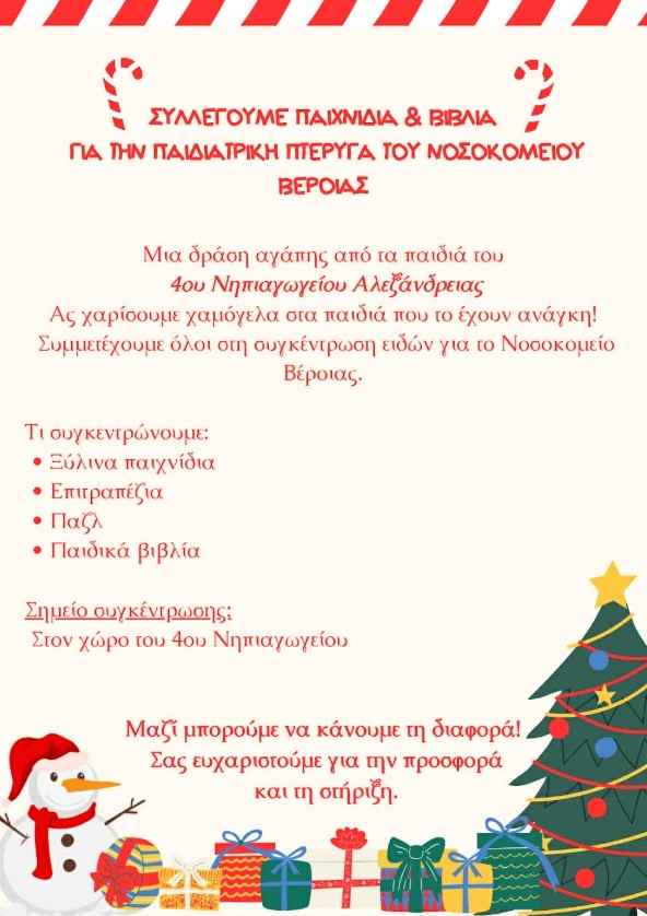 Το νηπιαγωγείο μας αναλαμβάνει μια ξεχωριστή πρωτοβουλία με στόχο να χαρίσει χαμόγελα στα παιδιά που νοσηλεύονται στην παιδιατρική πτέρυγα του Νοσοκομείου Βέροιας.