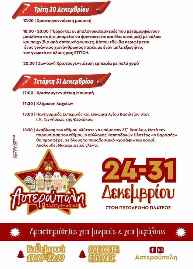 Όλοι οι δρόμοι τα Χριστούγεννα οδηγούν στην Αστερούπολη στον πεζόδρομο Πλατέος, με ένα πρόγραμμα εκδηλώσεων που υπόσχεται μαγεία, χαρά και γιορτινή ατμόσφαιρα για μικρούς και μεγάλους.
