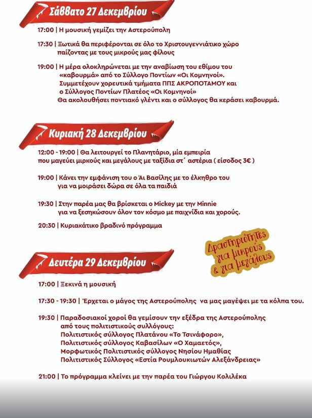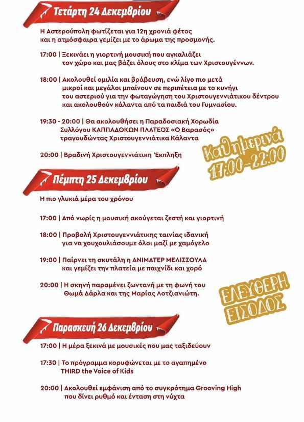 ΤΟ ΠΡΟΓΡΑΜΜΑ ΕΚΔΗΛΩΣΕΩΝ ΑΠΟ 24-31 ΔΕΚΕΜΒΡΙΟΥ 2025
