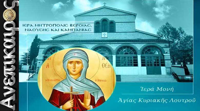 Ιερά Αγρυπνία για την εορτή της Αγίας Φιλοθέης της Αθηναίας θα τελεσθεί στην Ιερά Μονή Αγίας Κυριακής Λουτρού, την Τετάρτη 18 Φεβρουαρίου, από 20:00 έως 00:30.