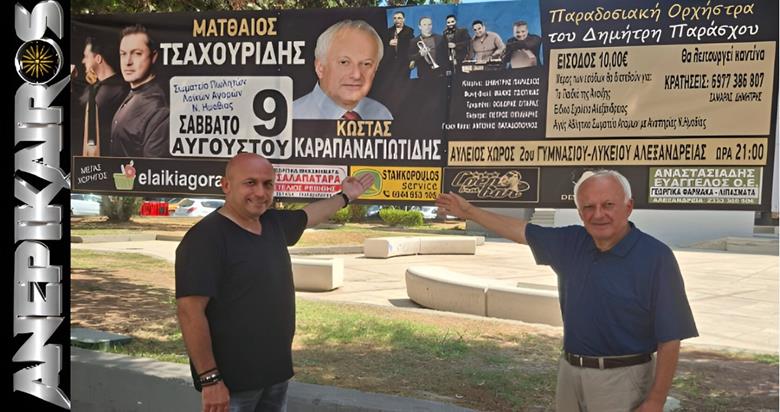 Σημειώστε την ημερομηνία! Στις 9 Αυγούστου, ο προαύλιος χώρος του 2ου Γυμνασίου Αλεξάνδρειας θα μετατραπεί σε μια μεγάλη μουσική σκηνή, φιλοξενώντας μια ξεχωριστή συναυλία με τους Ματθαίο Τσαχουρίδη και Κώστα Καραπαναγιωτίδη και την συμμετοχή της ορχήστρας του Δημήτρη Παράσχου.