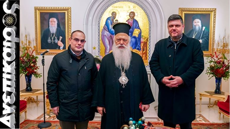 Το μεσημέρι της παραμονής της Πρωτοχρονιάς του 2026 (Τετάρτη 31 Δεκεμβρίου 2025), αντιπροσωπεία της Εταιρείας Μελετών Ιστορίας και Πολιτισμού Ν. Ημαθίας, αποτελούμενη από τον πρόεδρο του Δ.Σ. Νικόλαο Βουδούρη και τον αντιπρόεδρο του Δ.Σ. Εμμανουήλ Ξυνάδα, επισκέφθηκε τον Σεβασμιώτατο Μητροπολίτη Βεροίας, Ναούσης και Καμπανίας κ. Παντελεήμονα, στο Επισκοπείο.