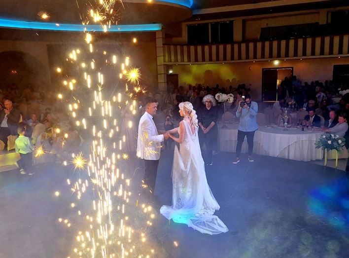 Το ζευγάρι έλαμπε — και μαζί τους έλαμπε και ο χώρος. Η ενέργεια απογειώθηκε χάρη στις άψογες μουσικές επιλογές του DJ, που δεν έπαιξε απλώς μουσική, αλλά δημιούργησε εμπειρία.