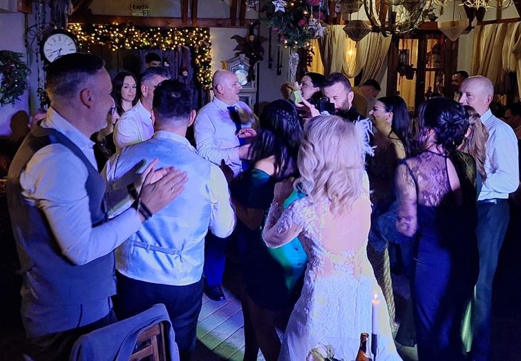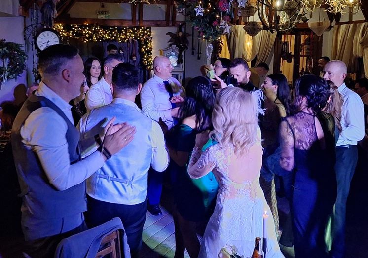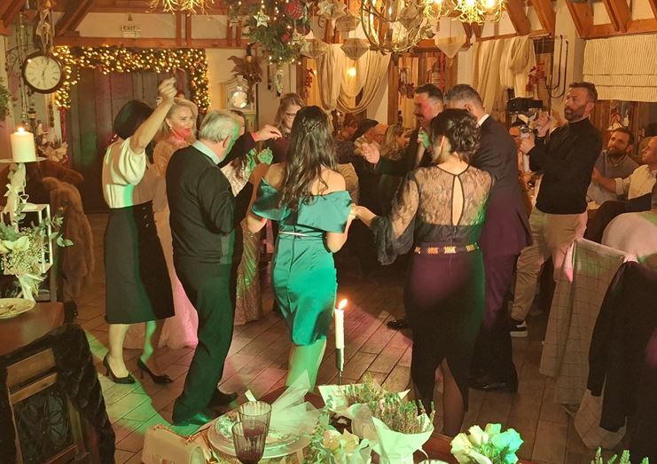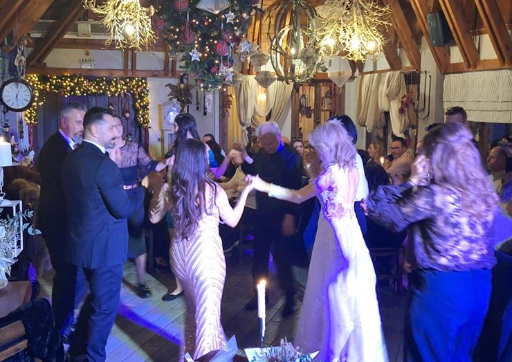 Η πίστα δεν άδειασε ούτε λεπτό, με τους καλεσμένους να χορεύουν, να γελούν και να αγκαλιάζονται κάτω από τα φώτα. Οι μουσικές επιλογές ήταν άψογες, συνδυάζοντας κλασικά γαμήλια κομμάτια με χριστουγεννιάτικες μελωδίες, δημιουργώντας μια ατμόσφαιρα ζεστασιάς και κεφιού.