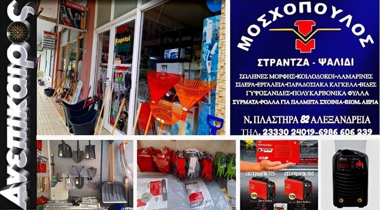 Στην οδό Νικ. Πλαστήρα 82, στην Αλεξάνδρεια Ημαθίας, το κατάστημα Μοσχόπουλος Σιδηρικά αποτελεί σημείο αναφοράς για κάθε επαγγελματία, τεχνίτη και λάτρη της χειροτεχνίας που αναζητά ποιότητα, ποικιλία και εξυπηρέτηση.