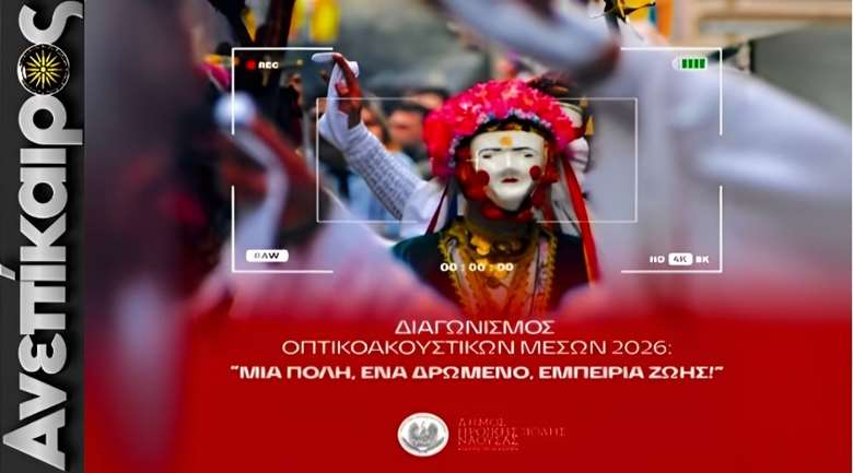 Ο Δήμος Ηρωικής Πόλεως Νάουσας και η Αντιδημαρχία Πολιτισμού, στο πλαίσιο των εκδηλώσεων «Νάουσα – Αποκριά 2026» και του κορυφαίου δρώμενου «Γενίτσαροι και Μπούλες», υλοποιούν με ιδιαίτερη επιτυχία τον Διαγωνισμό Οπτικοακουστικών Μέσων 2026 με τίτλο: