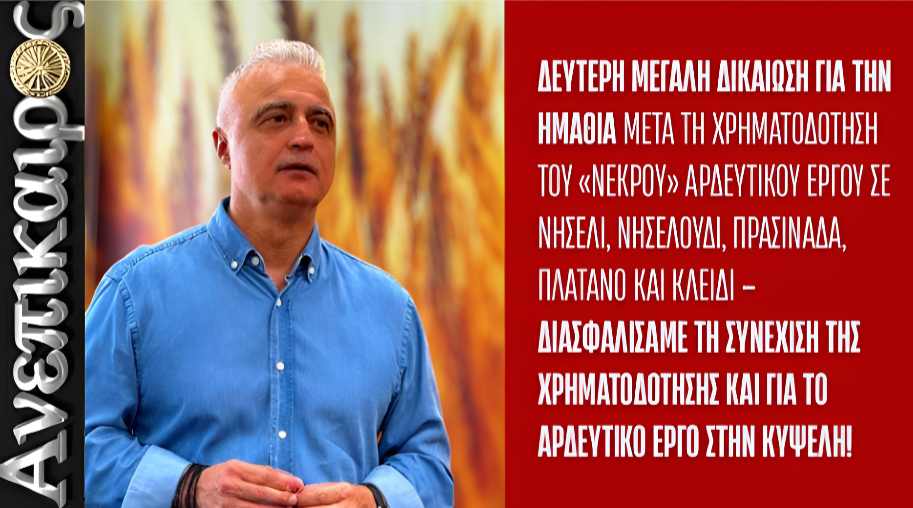 Λάζαρος Τσαβδαρίδης: Δεύτερη μεγάλη δικαίωση για την Ημαθία μετά τη χρηματοδότηση του «νεκρού» αρδευτικού έργου σε Νησέλι, Νησελούδι, Πρασινάδα, Πλάτανο και Κλειδί – Διασφαλίσαμε τη συνέχιση της χρηματοδότησης ΚΑΙ για το αρδευτικό έργο στην Κυψέλη!