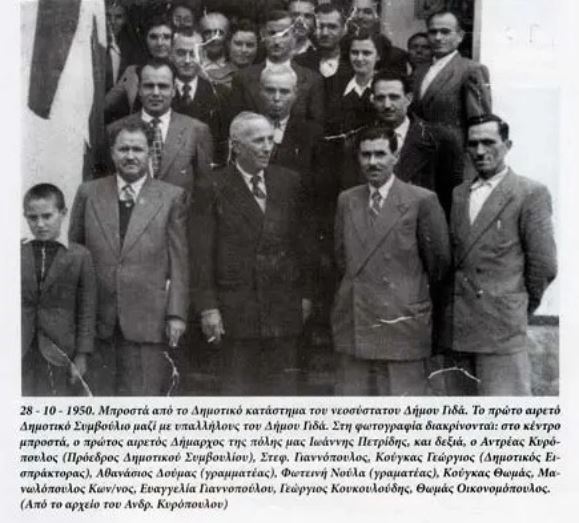 «Εν Γιδά τη 2αν του μηνός Απριλίου του έτους 1952, ημέραν της εβδομάδος Τετάρτη και ώραν 4 μ.μ. συνήλθε το Δημοτικό Συμβούλιο Γιδά εν τη συνήθη των συνεδριάσεων αιθούσης υπό την προεδρίαν του προέδρου αυτού κ. Ανδρέα Κυρόπουλου, παρόντων κατόπιν προσκλήσεως και των μελών κ.κ. Κ. Μανωλόπουλου Ν. Μηνόπουλου Γ. Σωτηρόπουλου Αν. Ράπτη Κ. Γεωργόπουλου, απόντων των κ.κ. Στ. Γιαννόπουλου, Θ Ντινόπουλου, Θ. Οικονομόπουλου και ευρέθεν νομίμω απαρτία προβαίνει εις την λήψην αποφάσεως επί του 1ου θέματος της ημερησίας διατάξεως ακούσα του κ. προέδρου εισηγηθέντος εις Συμβούλιον την μετονομασίαν της πόλεως Γιδά εις Αλεξάνδρεια και καλούσαντος ίνα τούτο αποφανθεί.