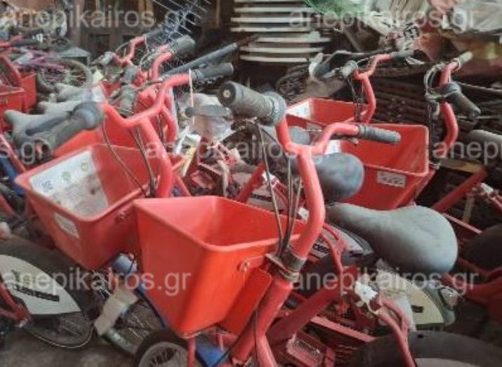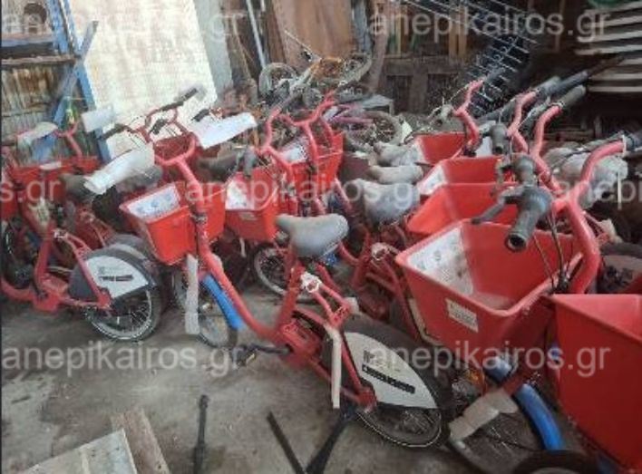 Την ίδια στιγμή, φωτογραφίες που κυκλοφορούν δείχνουν τα ηλεκτρικά ποδήλατα –αγορασμένα με δημόσιο χρήμα– στοιβαγμένα σε αποθήκες, παρατημένα στη σκουριά και στη φθορά.