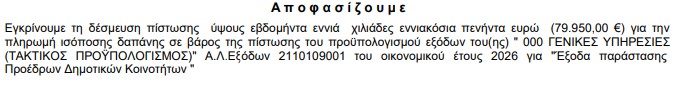 Η πρόσφατη απόφαση για τη δέσμευση πίστωσης ύψους 197.334,56 ευρώ για τις «Αντιμισθίες αιρετών (Δήμαρχος, Αντιδήμαρχοι κ.λπ.)» στον τακτικό προϋπολογισμό του 2026 δεν είναι λογιστική εγγραφή.