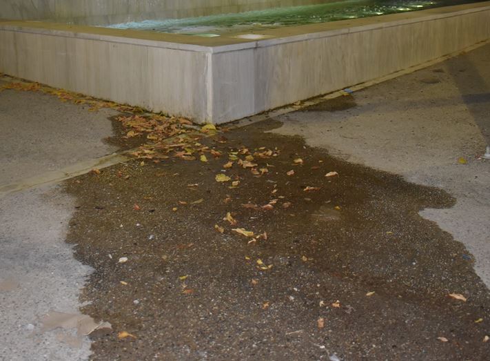 Εκεί, το νερό που τρέχει θυμίζει περισσότερο βιολογικό πείραμα παρά αστικό στολίδι. Η βρωμιά του είναι ανεξήγητη, ειδικά αν σκεφτεί κανείς πως το συντριβάνι είναι ολοκαίνουργιο και το νερό τρεχούμενο. Πώς γίνεται να μαζεύει σκουπίδια αφού τρέχει; Ούτε η επιστήμη το εξηγεί.