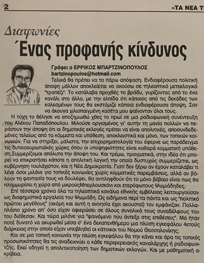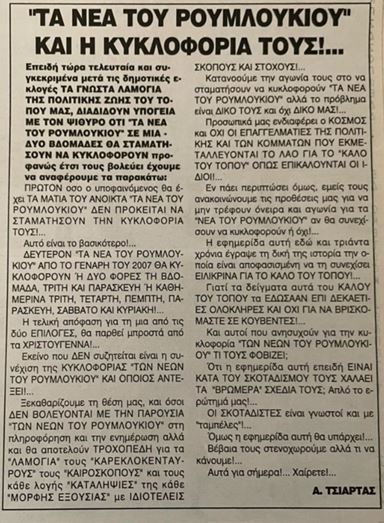 ΑΠΑΓΟΡΕΥΕΤΑΙ η αναδημοσίευση, η αναπαραγωγή, ολική, μερική ή περιληπτική, ή κατά παράφραση, ή διασκευή απόδοση του περιεχομένου της ηλεκτρονικής αυτής δημοσίευσης, με οποιονδήποτε τρόπο, μηχανικό, ηλεκτρονικό, φωτοτυπικό, ηχογράφησης ή αλλο, χωρίς προηγούμενη γραπτή άδεια της κατόχου των πνευματικών δικαιωμάτων Ελευθερίας Τσιάρτα, σύμφωνα με τις διατάξεις του Νόμου 2121/1993, αντίστοιχων οδηγιών και αποφάσεων της ΕΕ και κανόνων Διεθνούς Δικαίου.
