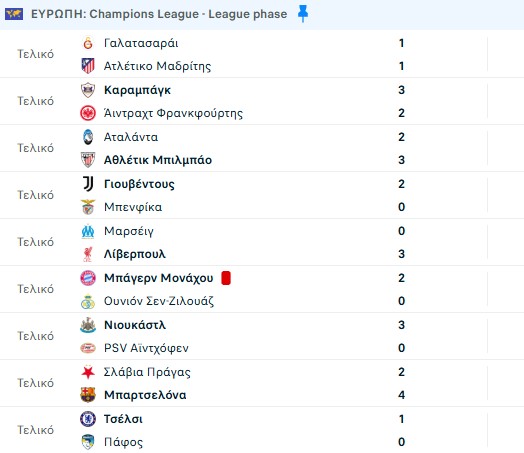 Αποτελέσματα και βαθμολογία στο Champions League στην προτελευταία αγωνιστική.