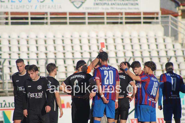 Παρότι το παιχνίδι δεν είχε πολλές φάσεις ούτε ιδιαίτερη ένταση, η Βέροια εξέφρασε έντονα παράπονα προς τον διαιτητή Ασβεστόπουλο από το Κιλκίς για δύο φάσεις μέσα στην περιοχή του Πιερικού.