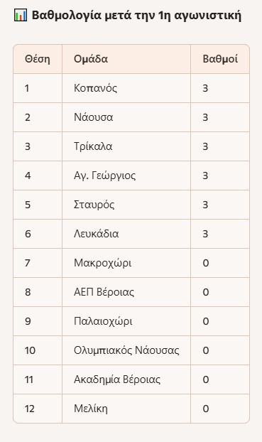 Λευκάδια – Άγιος Γεώργιος: Οι δύο ομάδες ξεκίνησαν με νίκες και θέλουν να συνεχίσουν στον ίδιο ρυθμό. Τα Λευκάδια, με φόρα από το διπλό στο Μακροχώρι, υποδέχονται τον φιλόδοξο Άγιο Γεώργιο σε ένα ματς που μπορεί να κρίνει πολλά για τη συνέχεια.