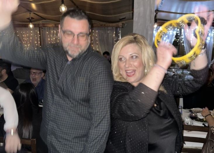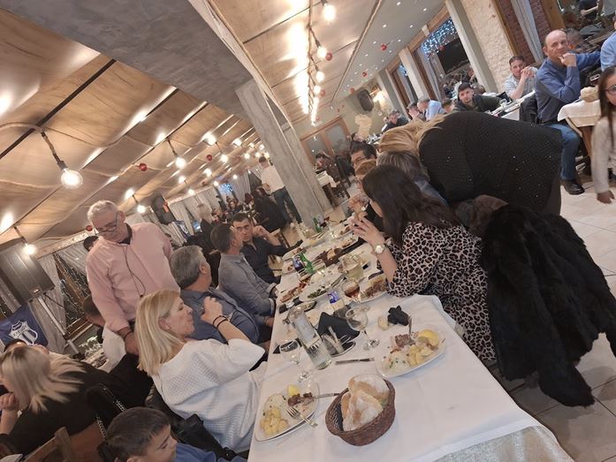 Η βραδιά κύλησε με πολύ τραγούδι, χορό και φυσικα φαγητό και ποτό.