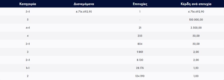 Οι τυχεροί αριθμοί στην κλήρωση ήταν οι εξής: 3, 7, 30, 31, 33 και Τζόκερ ο αριθμός 3.