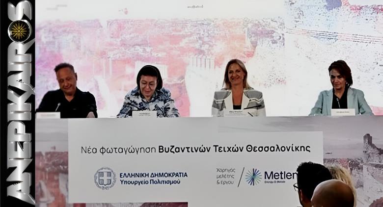 Συνέντευξη τύπου, για τον φωτισμό των Βυζαντινών Τειχών της πόλης, έδωσε σήμερα στο Αρχαιολογικό Μουσείο Θεσσαλονίκης, η Υπουργός Πολιτισμού Λίνα Μενδώνη με την εκπρόσωπο της METLEN Βίβιαν Μπουζάλη Chief Corporate Affairs and Communication Officer και την σχεδιάστρια του έργου Ελευθερία Ντεκώ, παρουσία του Δημάρχου Στέλιου Αγγελούδη.