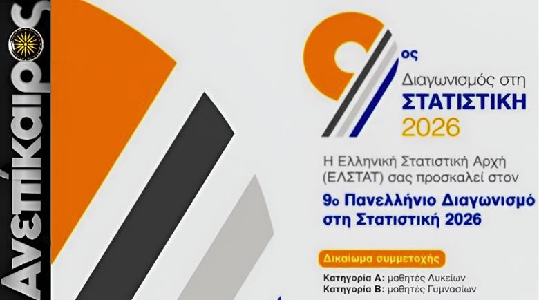 Η Ελληνική Στατιστική Αρχή (ΕΛΣΤΑΤ), στο πλαίσιο της στρατηγικής της για την «Ανάπτυξη της Στατιστικής Παιδείας στην Ελλάδα», διοργανώνει για ένατη συνεχή χρονιά τον «Πανελλήνιο Διαγωνισμό στη Στατιστική», από τον Οκτώβριο 2025 έως και τον Απρίλιο 2026.