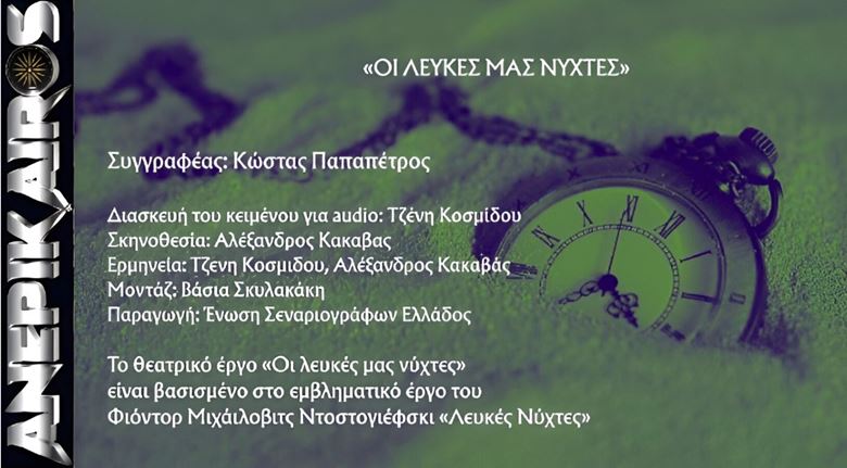 Το θεατρικό έργο «Οι λευκές μας νύχτες» είναι βασισμένο στο εμβληματικό έργο του Φιόντορ Μιχάιλοβιτς Ντοστογιέφσκι «Λευκές Νύχτες»