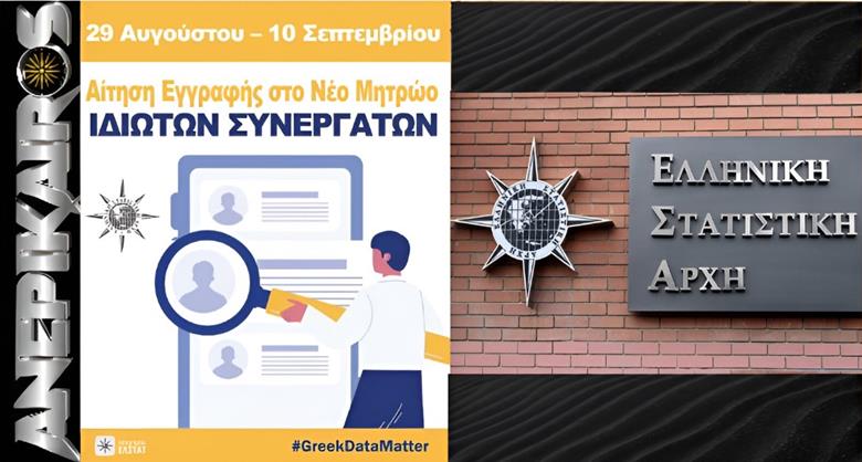 Η ΕΛΣΤΑΤ καλεί τους ενδιαφερόμενους να υποβάλουν ηλεκτρονική αίτηση για την ένταξή τους στο Μητρώο Ιδιωτών Συνεργατών (ΙΣ) περιόδου Σεπτεμβρίου 2025 – Απριλίου 2026. Οι αιτήσεις, για την εγγραφή στο νέο Μητρώο ΙΣ, θα υποβληθούν από τους ενδιαφερόμενους μόνον ηλεκτρονικά στην ιστοσελίδα της ΕΛΣΤΑΤ. Η αίτηση αποτελεί παράλληλα υπεύθυνη δήλωση για όλα τα αναφερόμενα σε αυτήν.