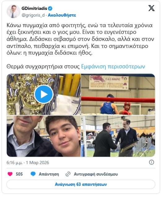 Ο κ. Δημητριάδης, ο οποίος ασχολείται με την πυγμαχία από νεαρή ηλικία, προχώρησε και σε σχετική ανάρτηση: