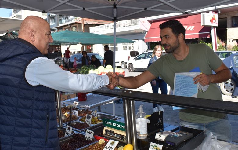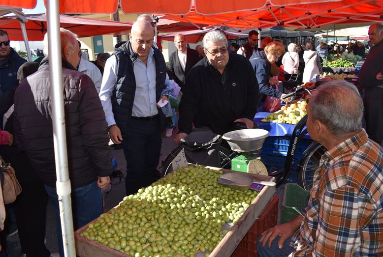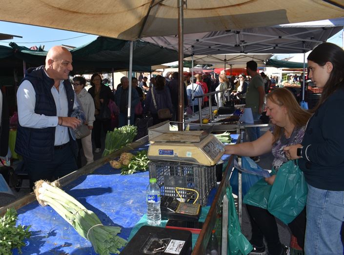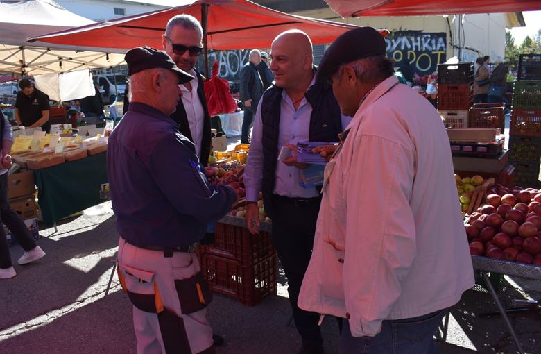 Η περιοδεία του κ. Κοτίδη ξεκίνησε από τη λαϊκή αγορά, όπου συνομίλησε με παραγωγούς, καταναλωτές και κατοίκους της περιοχής σε εγκάρδιο και ανοιχτό κλίμα. Οι συζητήσεις περιστράφηκαν γύρω από τις αυξήσεις στο κόστος ζωής, τις δυσκολίες της αγροτικής παραγωγής και την ανάγκη για στήριξη των μικρών παραγωγών.