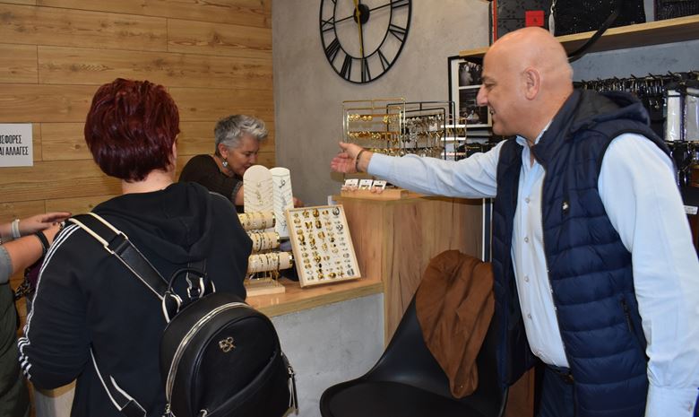 Στη συνέχεια, ο Βουλευτής περπάτησε στη Βετσοπούλου, τον εμπορικό πυρήνα της πόλης, όπου επισκέφθηκε καταστήματα και συνομίλησε με ελεύθερους επαγγελματίες.