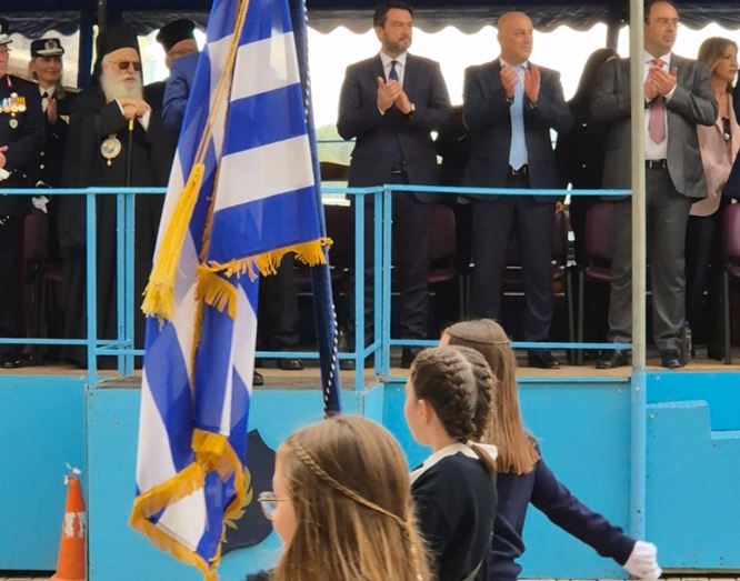 Στη συνέχεια, παρακολούθησε τη μαθητική και στρατιωτική παρέλαση, χειροκροτώντας θερμά τους μαθητές και τις μαθήτριες των σχολείων της Βέροιας, τους προσκόπους, τις οδηγούς, τους πολιτιστικούς συλλόγους, τα Σώματα Ασφαλείας και τα τμήματα των Ενόπλων Δυνάμεων, που παρέλασαν περήφανα, στέλνοντας δυνατό μήνυμα ενότητας και εθνικής υπερηφάνειας.