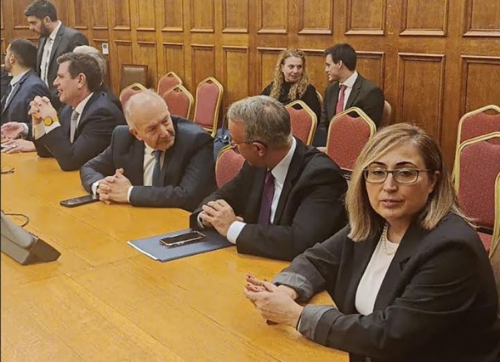 Η επίσημη υποδοχή έλαβε χώρα στην αίθουσα συνεδριάσεων της Επιτροπής Εξωτερικών και Άμυνας της Βουλής, παρουσία στελεχών και βουλευτών της Νέας Δημοκρατίας, μεταξύ των οποίων και η Βουλευτής Ημαθίας, κ. Στέλλα Αραμπατζή.
