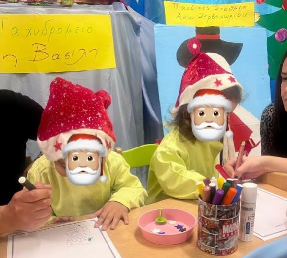 Στη συνέχεια γράψανε γράμμα στον Αη Βασίλη, φωτογραφήθηκαν ως χιονάνθρωποι και έκαναν μια ωραία Χριστουγεννιάτικη κατασκευή. Η αποκορύφωση ήταν ο ερχομός του Άη Βασίλη,ο οποίος ήρθε να παραλάβει τα γράμματα των μικρών μαθητών και φωτογραφήθηκε μαζί τους.