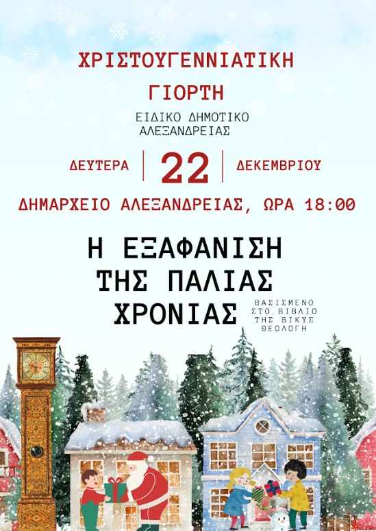 Χριστουγεννιάτικη γιορτή του Ειδικού Δημοτικού Σχολείου Αλεξάνδρειας την Δευτέρα 22 Δεκεμβρίου.