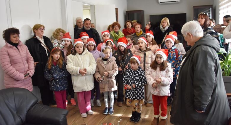 Οι παιδικές φωνές και οι γνώριμες μελωδίες των Χριστουγέννων δημιούργησαν μια ιδιαίτερα ζεστή ατμόσφαιρα στο Δημαρχείο, μεταφέροντας το εορταστικό κλίμα και αναδεικνύοντας τη σημασία της διατήρησης και της διάδοσης της τοπικής παράδοσης.